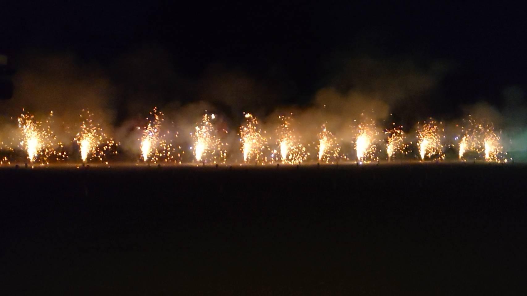 夜になり、ウッドデッキでキャンドルピラミッド。