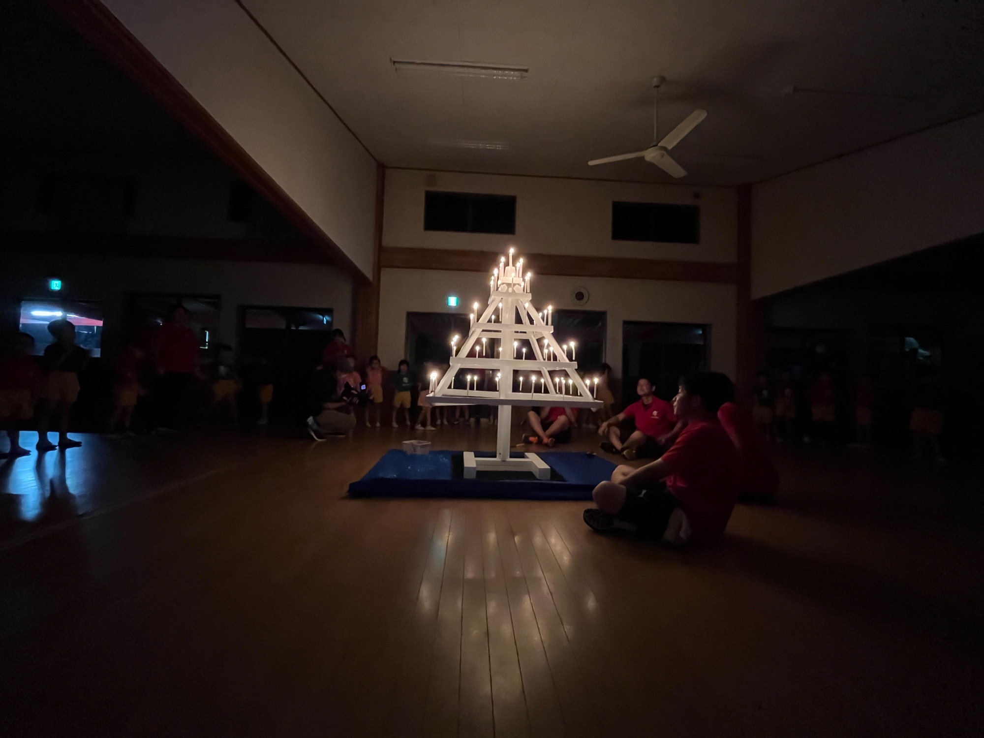 ホールに集まり始まりの会を行い、いよいよお泊り会が始まりました。