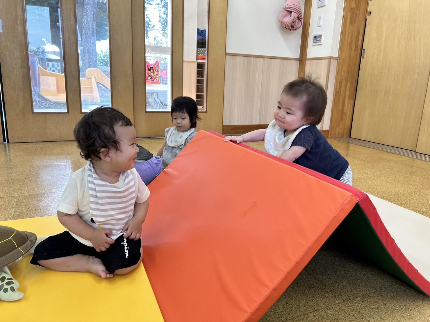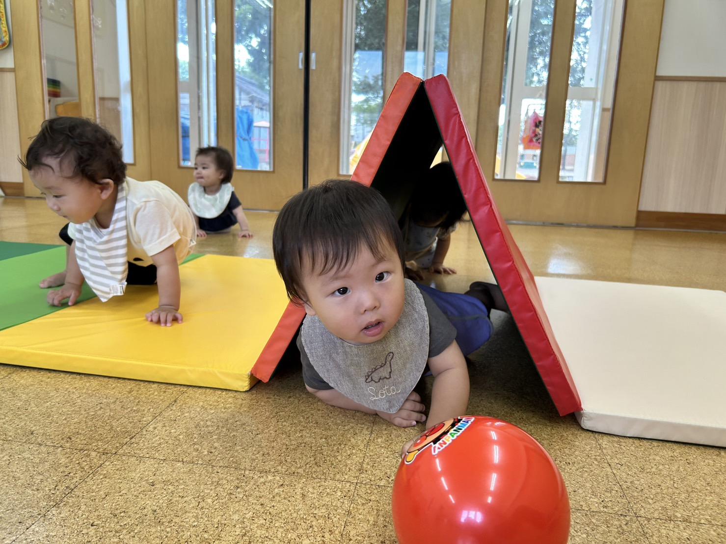 お友だちとハイハイをしたり、マットのトンネルをくぐり、笑顔いっぱい過ごすことが出来ました♪