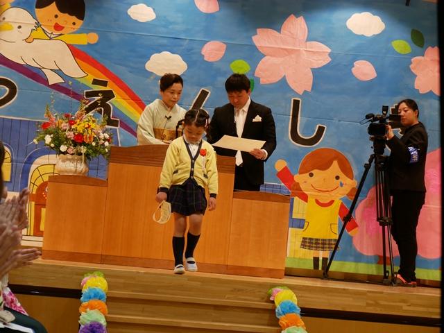 担任の先生、園長先生、メッセージを読んでくれる先生。心を込めてひとりひとりに証書を渡しました。