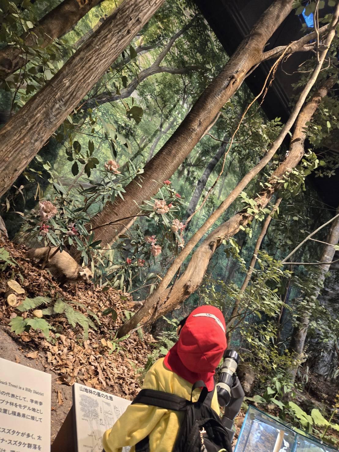 いつも幼稚園の園庭でも蝶々やだんごむし、カエルやクワガタなどの色々な生き物との触れ合いを楽しんでいるので、自然博物館に展示されている生き物にも興味津々。