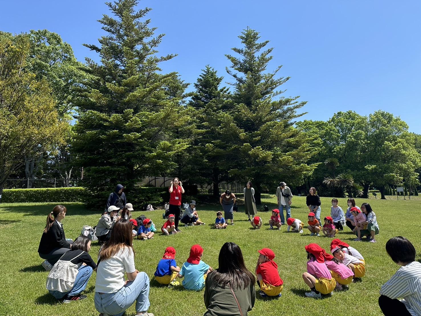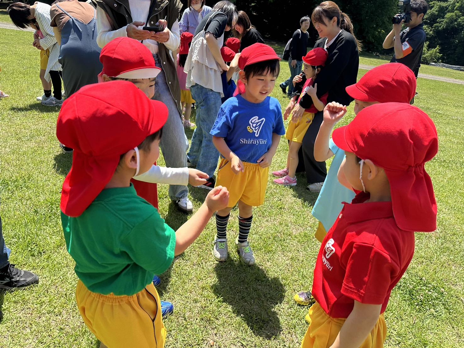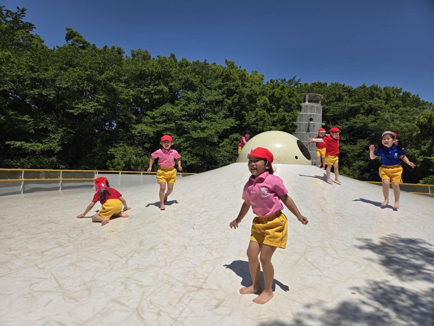 広い芝生エリアでは、クラスごとのレクリエーション。