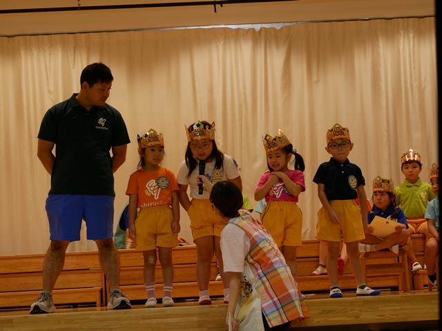 誕生児のお友だちはキラキラの冠をかぶり舞台へ上がります。