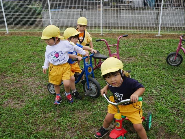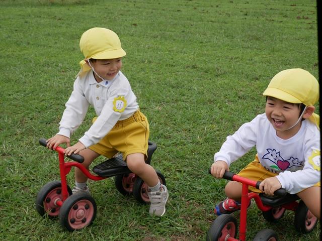 かけっこや三輪車で遊びたくさん身体を動かしました。