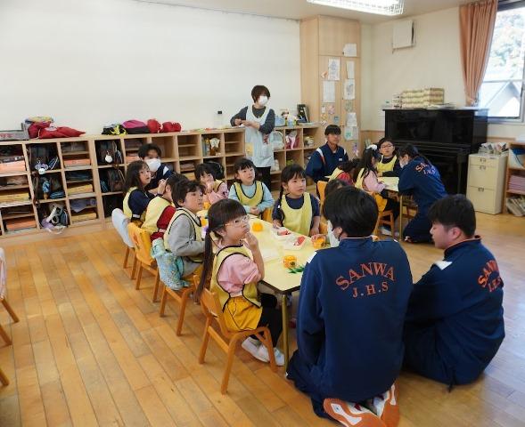 三和中学3年生が家庭科郊外学習でしらゆり幼稚園にきてくれました。