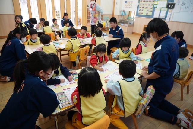 子どもたちは幼稚園のことをお話したり、自分のクラスはここだよ!と自己紹介をしたり