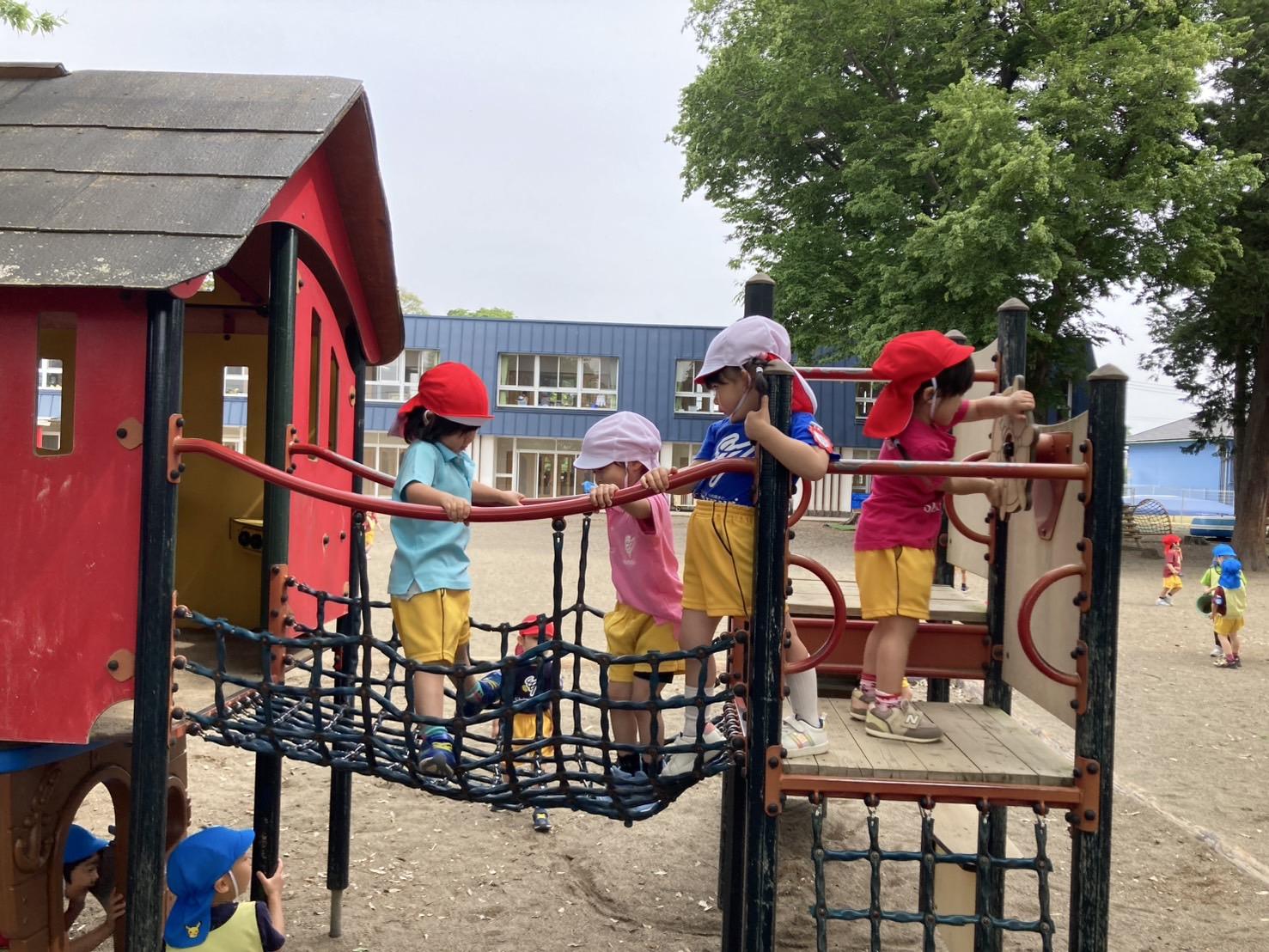 しらゆり幼稚園では、熱中症警戒アラートを設置し都度計測し、涼しく遊べる場所を決めたり、遊ぶ時間を決めながらこどもたちの健康面に配慮し過ごしています。